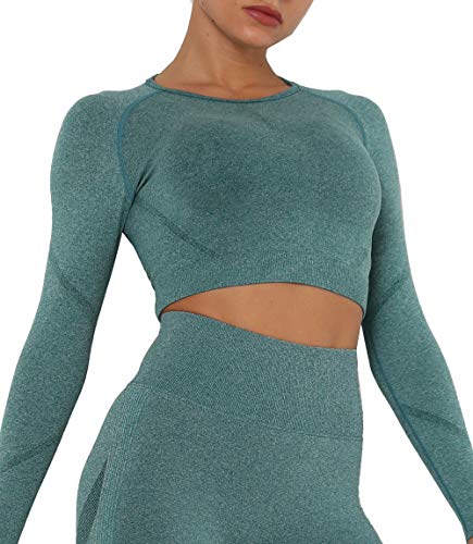 - ❤【Crop Top de Manga Larga】-- Puño elástico con orificio para el pulgar, ayuda a mantener las mangas en su lugar y las manos calientes en otoño e invierno frescos, ofrece una adición favorecedora a tu entrenamiento. Los detalles fruncidos del pecho se combinan con un tejido sin costuras, enfatizando tu silueta sexy.