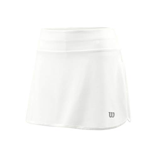 - Contenido: 1 x Falda de tenis para mujer Wilson, W TRAINING 12.5 SKIRT, Material: 86% Poliéster, 14% Elastano, Color: Blanco, Talla: L, WRA783201