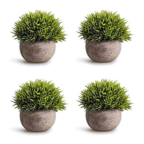 CDWERD Planta Artificial para macetas, Mini Hierba Bonsai con macetas Grises, para casa, Oficina, decoración, Boda, cumpleaños (4 Unidades)