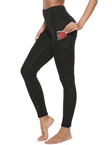 REIDAY Mallas Deportivas de Mujer, Mujer Pantalones elásticos de yoga con bolsillos laterales, 3/4 polainas de yoga Fitness, pantalones deportivos y elásticos polaina, Leggings Mujer (Negro, S)