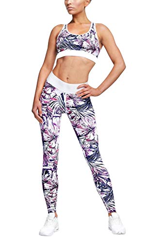 Conjunto Ropa Deportiva Mujer Bohemio Chic 2PC Conjuntos de Sujetador Crop Top y Pantalon Leggings Yoga Set Chandal Estampada Flores Verano Monos Jumpsuit Sportwear para Gym Running Pilates Fitness