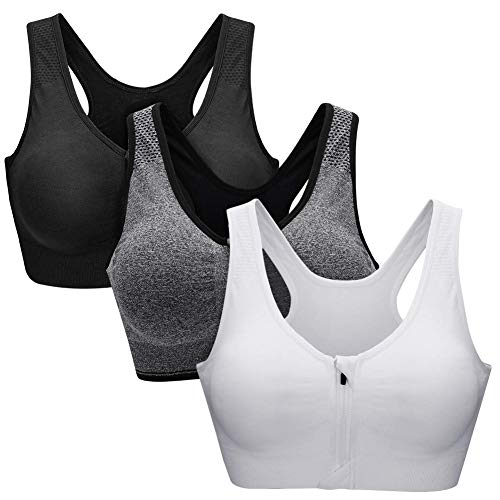 ZOEREA Sujetador Cierre Delantero Deportivo para Mujer Gimnasio Ropa con Almohadillas Extraíbles para Correr Sin Costuras Yoga Fitness 3 Piezas