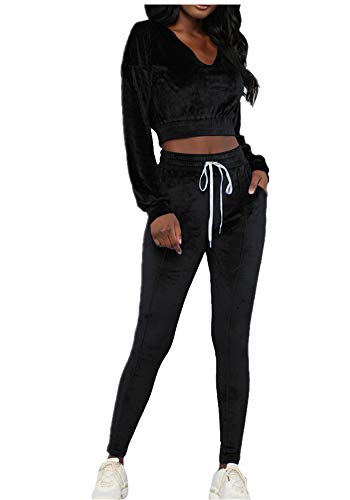 wenyujh Juego de Ropa de Mujer, Deporte, Tiempo Libre, Sudadera, Pantalones, Primavera, 2 Piezas, Terciopelo, para el Vientre, Chaqueta, pantalón de Tiempo Libre, Monocromo Schwarz 1 S
