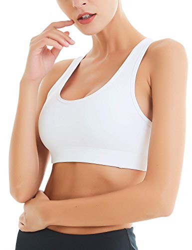 YIANNA Sujetador Deportivo para Mujer con Relleno Extraíble Top Sujetadores Deporte sin Costuras Blanco,UK YA BRA139 White S