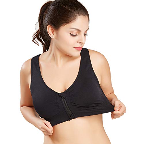 YIANNA Sujetador Deportivo para Mujer con Relleno Cremallera Delantera Gym Yoga Sports Bra Top Deporte sin Aros, Negro, 147 Size S