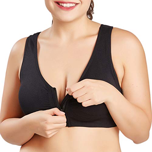 YIANNA Mujer Cierre Delantero Sujetadores Deportivos Post Operatorio con Soporte de Espalda Sin Costura,UK YA BRA128 Black L