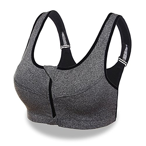 NOVECASA Sujetador Deportivo Espalda Deportiva con Cremallera de Cierre Frontal para Gimnasia Yoga Fitness Corriendo (L, Gris)